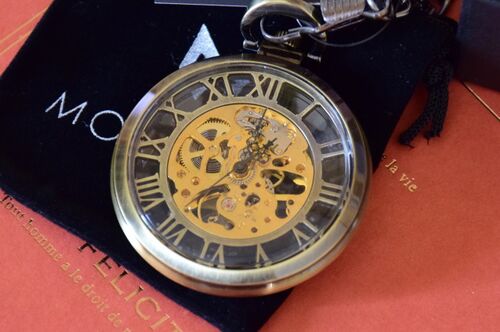 もともと腕時計や懐中時計に興味があったのですが、ここ最近部屋のインテリアの関係でアンティークでカフェなものに興味が湧きまして…。 買ってみました。 懐中時計。手巻き機械式。お値段3280円。 裏表共に全面ガラス張りで内部機構が丸見え、ブロンズ仕上…