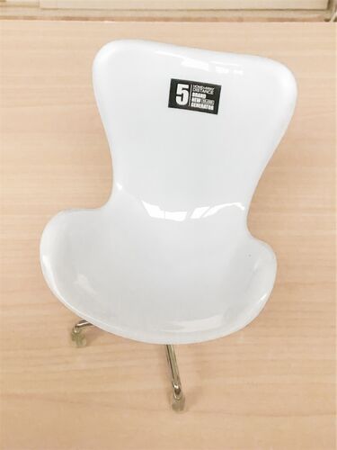ダイソーなネタ。 こういったミニチュアの椅子が売っていたので買ってみました。 商品名「インテリアチェア(スタイリッシュカラー)」、ぬいぐるみや携帯乗せ、鍵のキープにとのこと。背もたれの一番高いところまでの高さ、約13.5cm。 Amazonで買った中華製人…