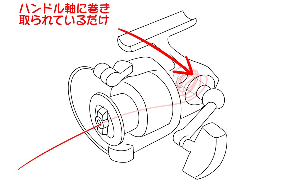 ちなみに、実際にライン巻取り機能があるそうなのですが、ベイトはいいとして、スピニングはベールやローターはボディと一体で稼働せず、ドラグノブ先端から導いたラインをリール内部のハンドル軸に固定するだけのちょっと残念な仕様のようです。(まあコスト、技術的にローターを可動させるのは無理か)