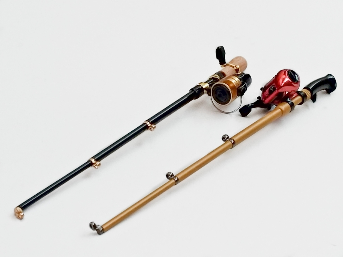 ロッド、リール共にダイキャスト製。手持ちのfigmaの鏡音リンちゃんあたりに持たせようと思いましたが、サイズが大きすぎたので止めました。